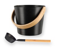 Un seau de sauna au design intemporel, pensé pour une prise en main agréable. Les parties métalliques sont en aluminium anodisé coloré, tandis que la poignée est réalisée en bambou thermotraité.